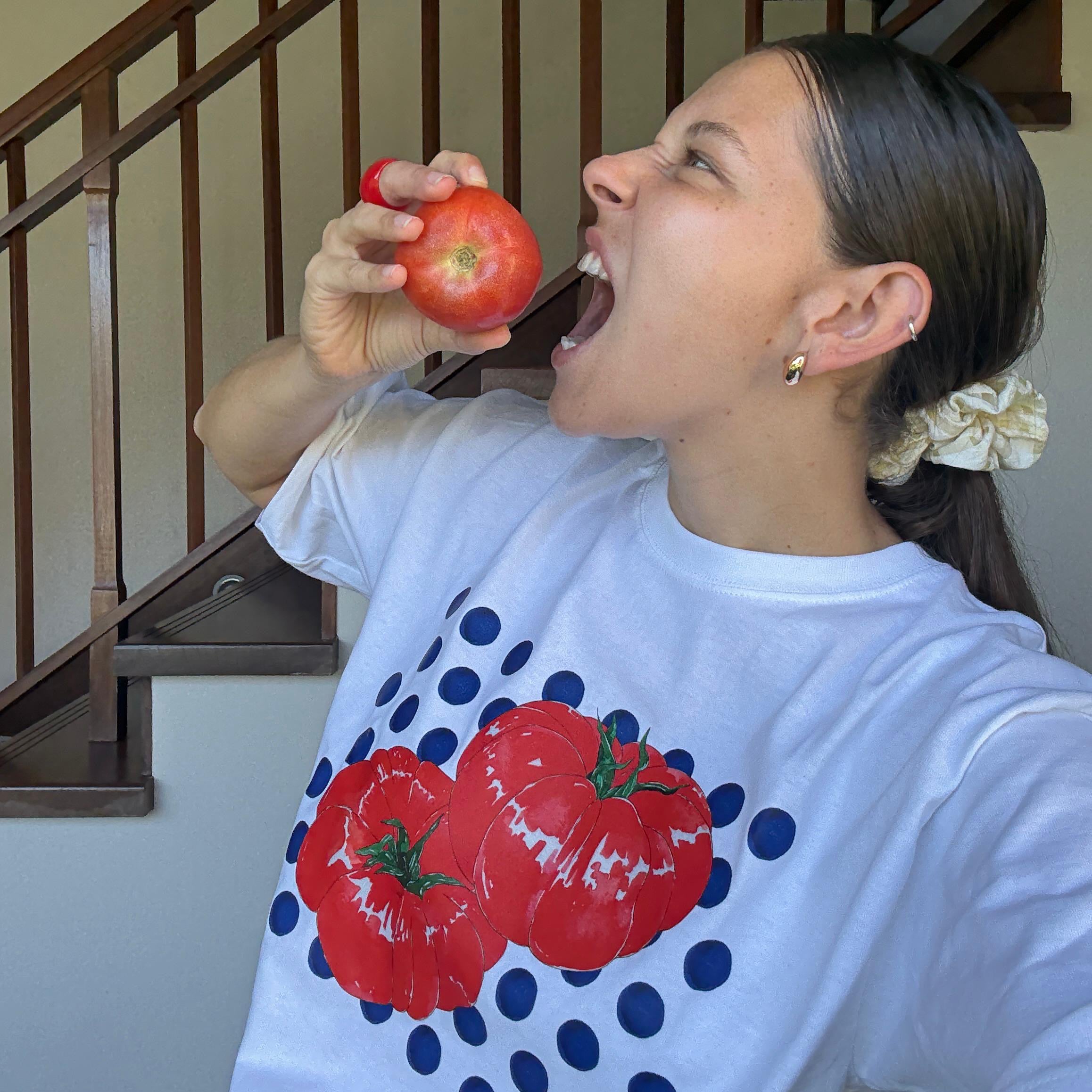 Inspirada en un viaje a Portugal, que pasé por Oporto, Lisboa y Lagos, y por los vecinos españoles. Ésta colección de remeras tiene un poco de todo, azulejos y golondrinas de cerámica típicas portuguesas, las frutas que podemos encontrar en Portugal y una nueva versión de tomates con lunares donde la inspiración es un poco más española.